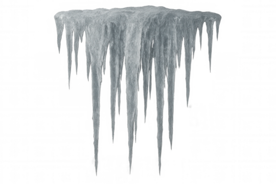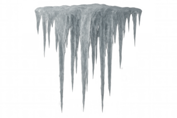 Icicles hanging from snow creating a frozen winter formation on transparent background, cold weather concept