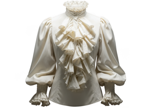 A white Victorian-style blouse with ruffles and lace isolated on transparent background