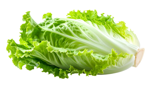 Vibrant green frilly lettuce head with ruffled leaves isolated on transparent background
