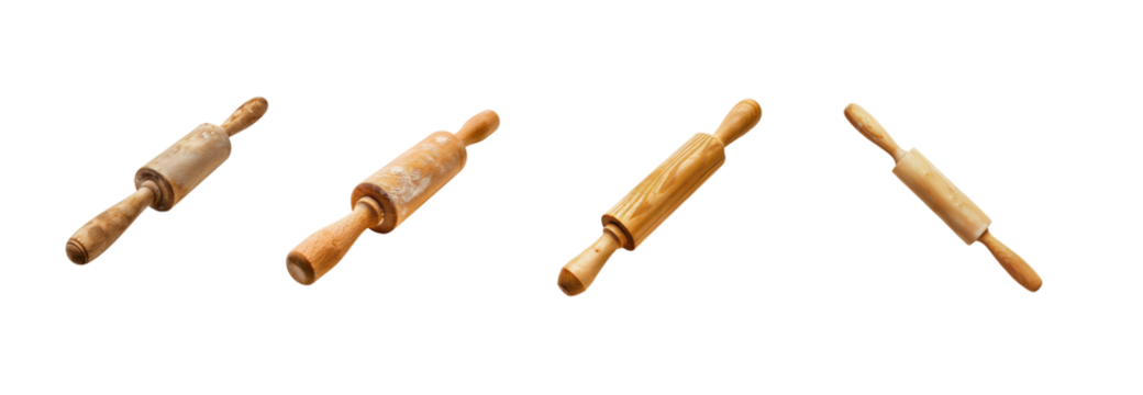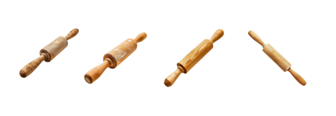 Collection of Vintage Wooden Rolling Pins on White Background