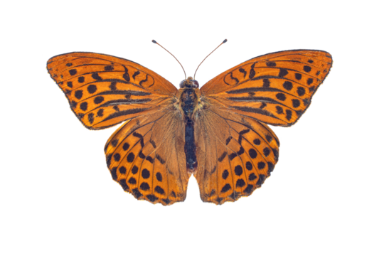 Orange butterfly isolated on transparent background. Queen of Spain fritillary butterfly.