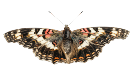 Detailed close up of a silverwashed fritillary butterfly displaying intricate wing patterns and delicate antennae against an isolated setting for artistic purposes
