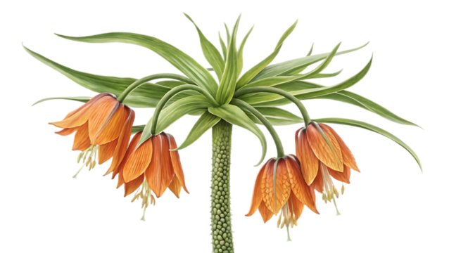 Close up of a crown imperial flower with green leaves