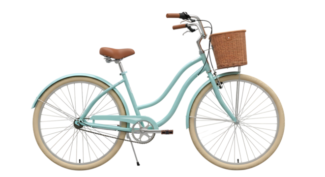 Vintage bicycle sketch with front basket in outlined silhouette Isolated on a transparent background