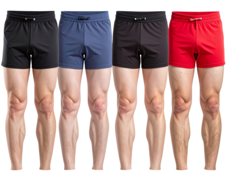 Set of four men’s underwear in assorted colors front view isolated on transparent background PNG