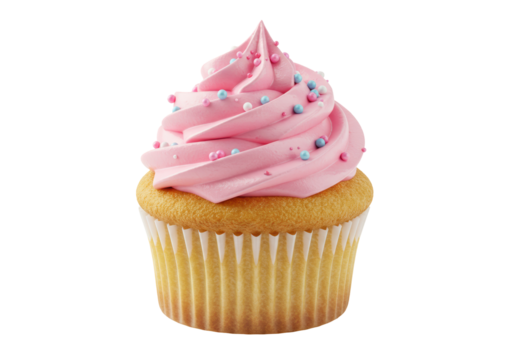 Isolated Pink Frosted Cupcake with Sprinkles, Sweet Celebration Treat