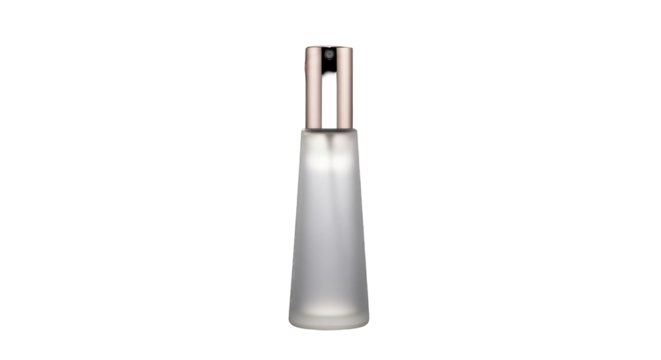 Elegant frosted glass bottle with golden pump isolated PNG, luxurious cosmetic container for lotion or soap on transparent background