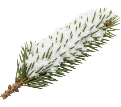 Snow-covered spruce branches on a transparent background PNG image for winter holidays