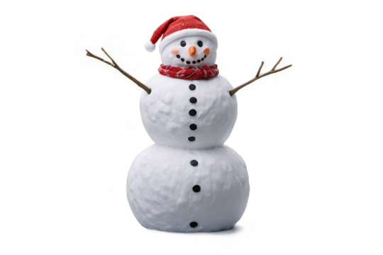 Adorable snowman with festive attire ready for winter imagery, transparent png, white background