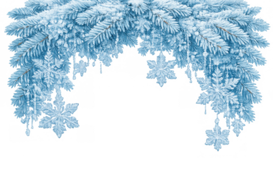 Frosty Silver Ornament and Pine Branch Bundle, isolated on transparent background