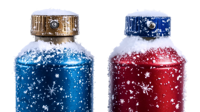 Festive Pine Branch Illuminated with Red Lights and Covered in Fresh Snow, a Winter Wonderland