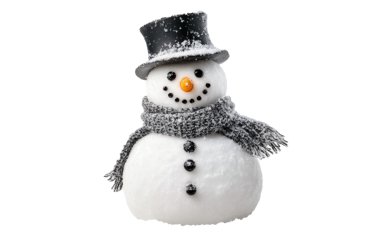 Photorealistic Snowman with Red Scarf, Buttons, and Twig Arms Isolated on White Background