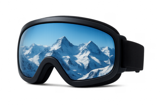 Snow landscape with mountain range, winter arctic environment on transparent background, cold weather nature scene