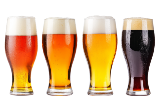 a glass of cold beer collection isolated on transparent background