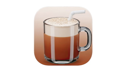Glass mug with frothy beverage and straw