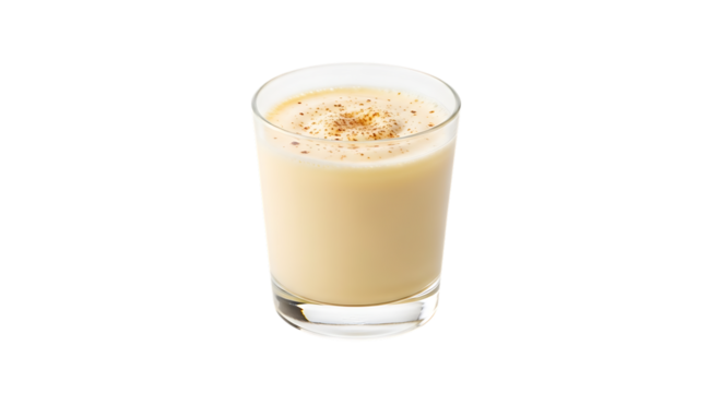 A refreshing glass of eggnog with a sprinkle of nutmeg on top.