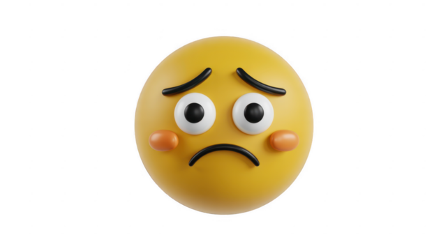 Worried yellow emoji face with frowning expression isolated on a transparent background