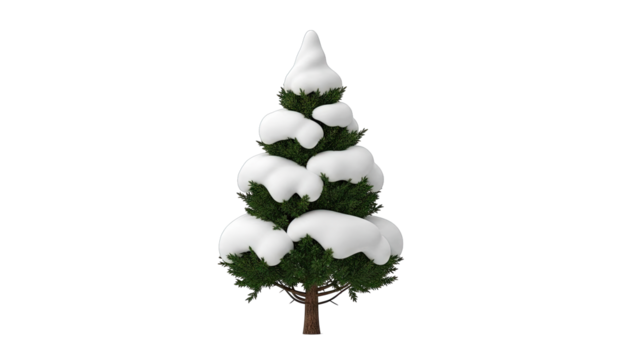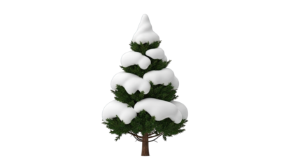 Snow covered pine forest isolated on a transparent background