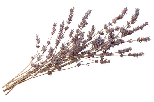Dried lavender sprig, rustic herbal element isolated on white, boho aesthetic