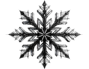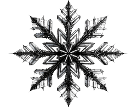 Intricate crystalline ice formation with eight distinct, sharp facets