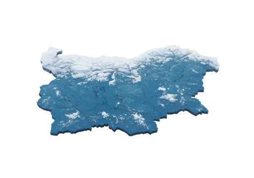 3D Rendered Bulgaria Map Snow Covered Isolated on Black Background