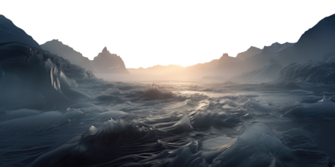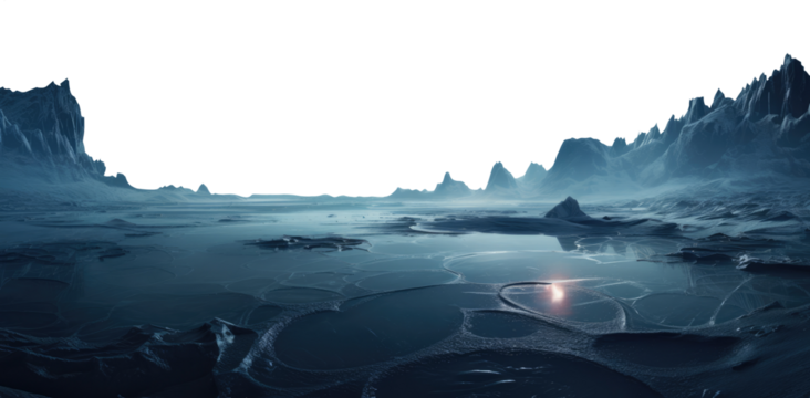 sub zero frozen planet landscape terrain. transparent PNG background. fantasy landscape. fantasy landscape.