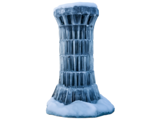 Majestic ancient ice tower standing alone in desolate wasteland, showcasing intricate crystalline details and ethereal beauty against a stark, contrasting environment