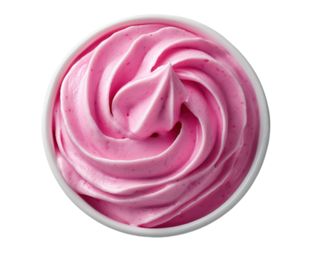 Colorful cream-pink soft-serve ice cream swirl on transparent background