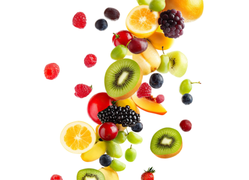 Assortment of fresh green vegetables and fruits including broccoli, apples, kale, peas, and cucumber, isolated on transparent background for healthy eating