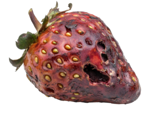 Overripe Strawberry with Mold and Decay, Highlighting Natural Decomposition and Food Waste Awareness on transparent background
