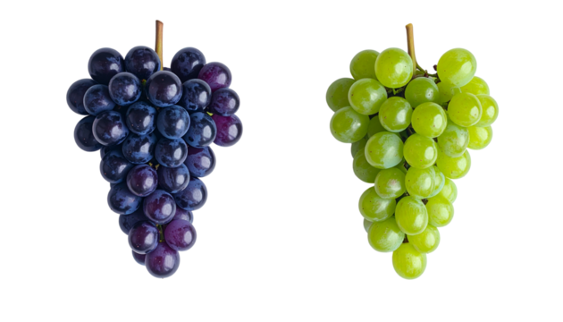 Ripe cluster of sweet pale green seedless table grapes showcases fresh vineyard harvest appeal on transparent background