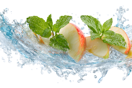 Fresh red apple and half apple isolated PNG, juicy fruit with leaf on transparent background for healthy eating and design