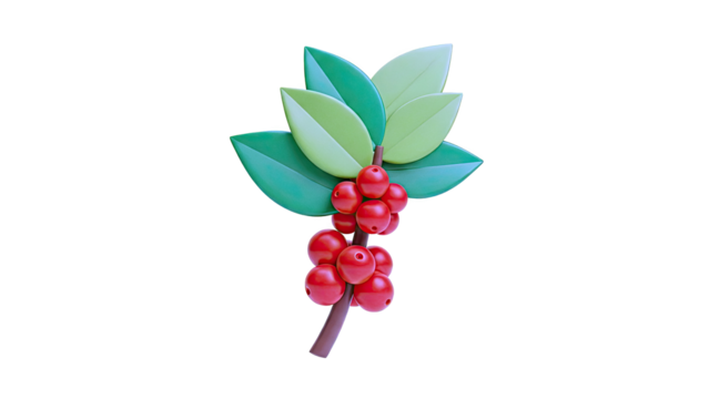 Stylized Coffee Branch with Red Berries and Green Leaves