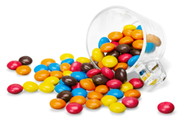 Assorted colorful fruit jelly candies in various flavors, isolated on transparent background