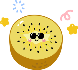 Vibrant stylized fruit with green leaves on transparent background