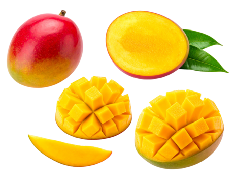 Ripe Mango Cubes Ready to Eat isolated on a transparent background fruit tropical