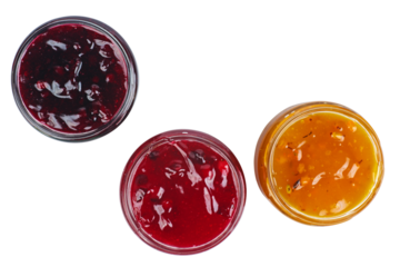 Jar of homemade strawberry jam with a rustic label, delicious and organic, isolated on a white background