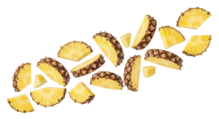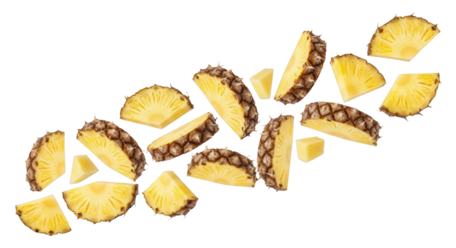 Detailed representation of freshly cut pineapple slices isolated highlighting pineapple, fruit, sliced in realistic and elegant