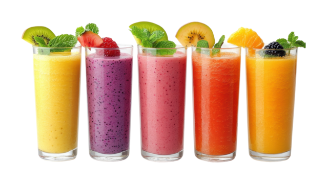 A vibrant assortment of colorful fruit smoothies isolated on transparent background