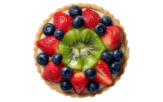 Delicious fruit tart featuring kiwi strawberries and blueberries highlighting fresh ingredients and culinary creativity isolated on transparent background PNG