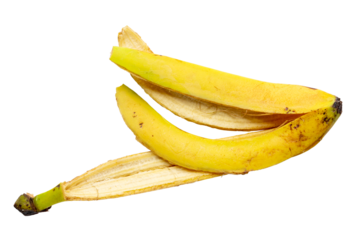 Peel of ripe yellow banana isolated on white background