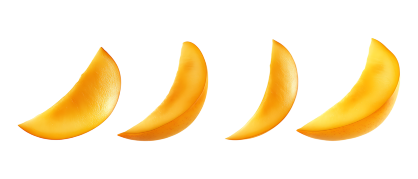 Pack of Mango Slice set of Five Different Poses set Against Transparent Background for Culinary, Tropical, or Food Promotion Projects