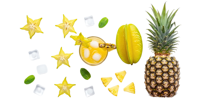 Tropical Fruit Mix PNG – Pineapple Mango Transparent Background