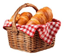 Bread in Picnic Basket Isolated on Transparent Background