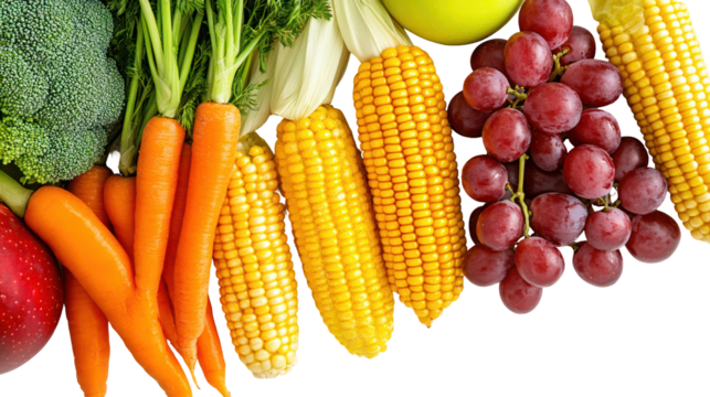 Assortment of fresh vegetables and fruits isolated on transparent background