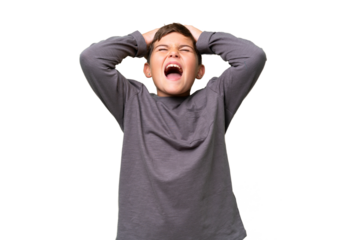 Little caucasian kid over isolated chroma key background stressed overwhelmed