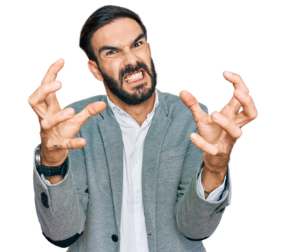 Young hispanic man wearing casual clothes crazy and mad shouting and yelling with aggressive expression and arms raised. frustration concept.