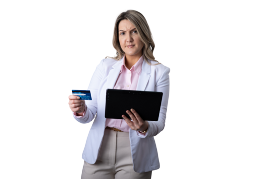 Frustrated caucasian businesswoman expressing anger on transparent background