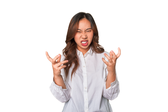 Angry woman expressing frustration on transparent background