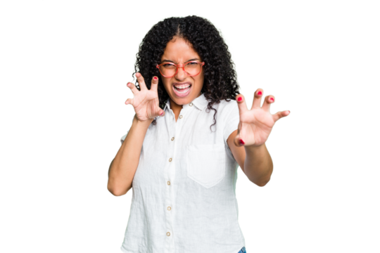 Angry woman raising arms transparent emotions expression png